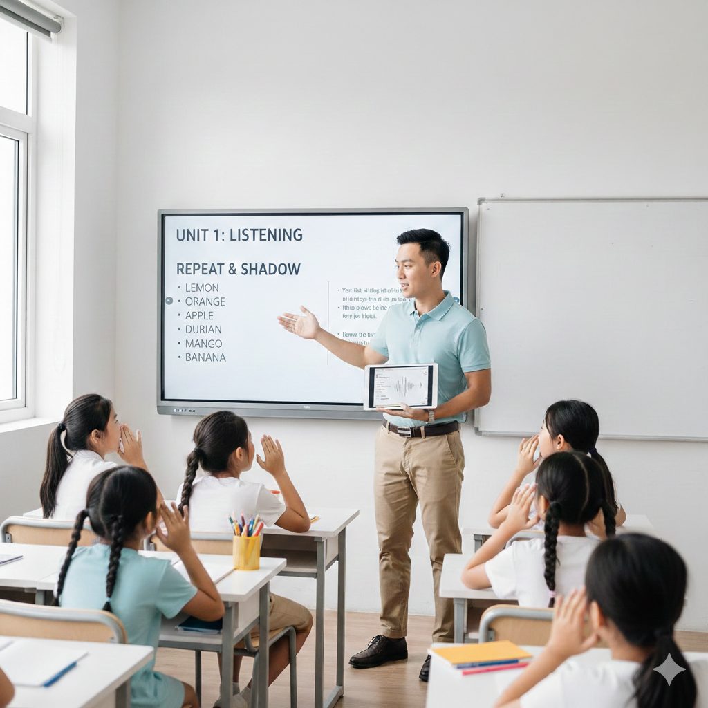 Repeat & Shadow là kỹ thuật kết hợp giữa nghe và nói, giúp học sinh cải thiện đồng thời khả năng nghe hiểu và phát âm.